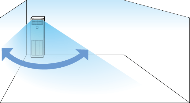 室内機を部屋の隅に設置時は、右方向へワイドに送風。
