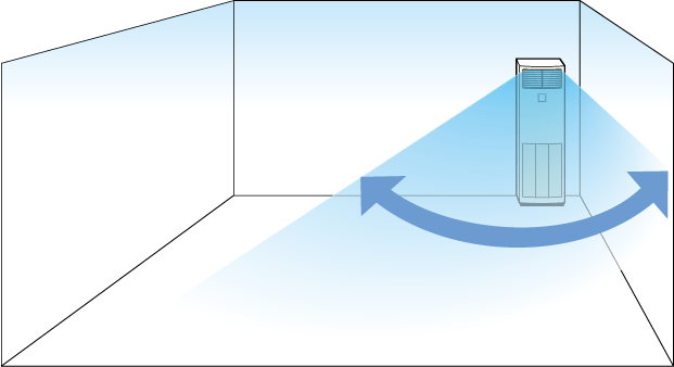 右方向ワイドスイング室内機を部屋の隅に設置時は、